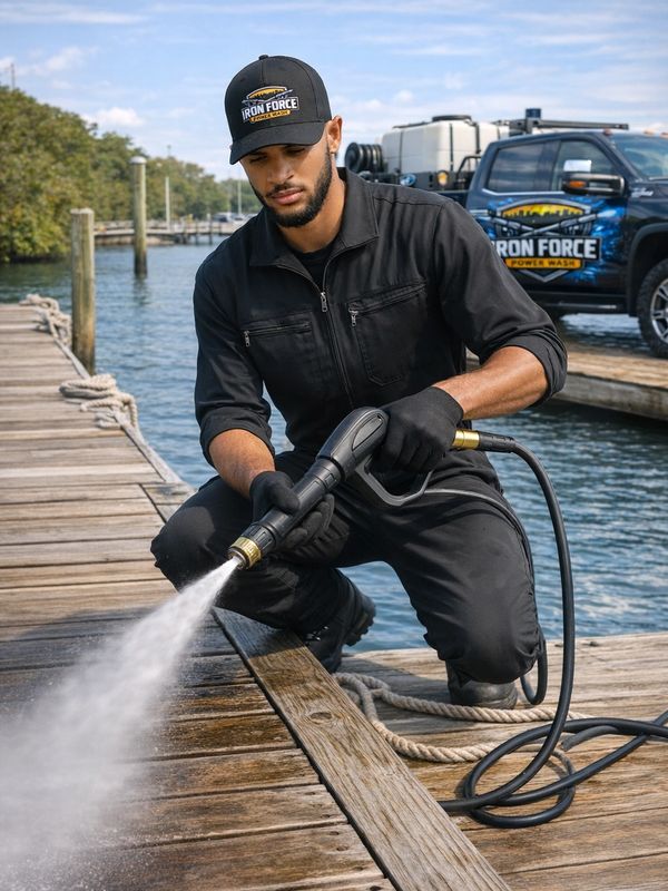 Our services include driveway power washing, deck and patio cleaning, dock and marina washing, siding cleaning, and commercial surface cleaning. Using commercial-grade equipment and proven techniques, we safely remove built-up grime while preserving the integrity of wood, concrete, and composite surfaces.